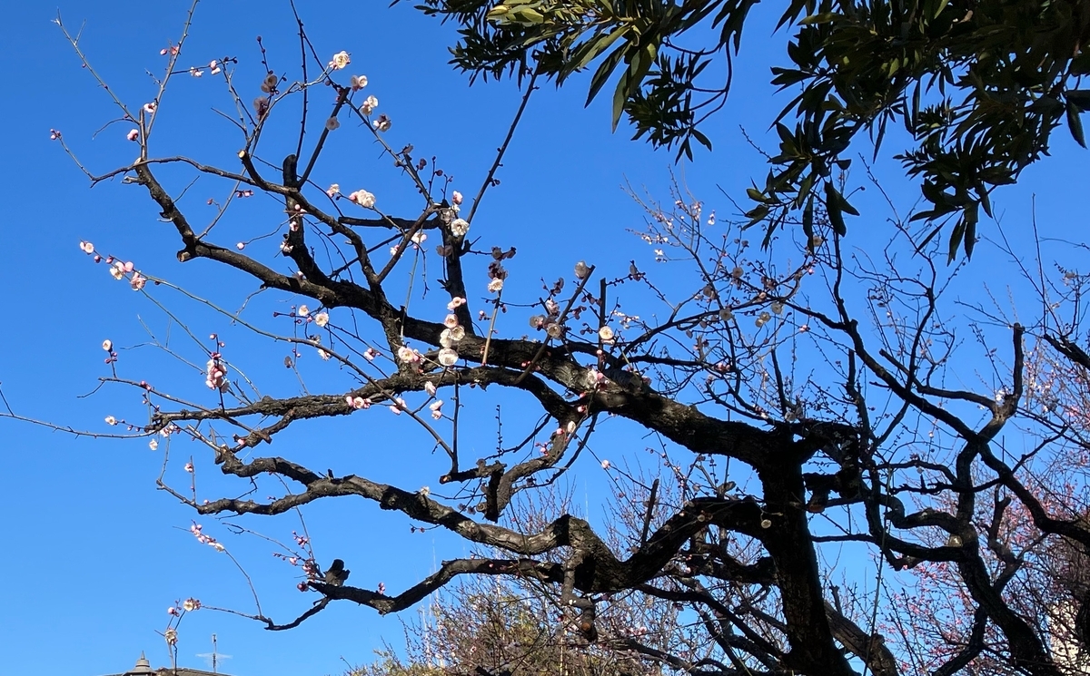 今日は武漢の森の紅梅白梅の開花状況を見ようと足を延ばしました。知音亭の池に氷が張っており今年の寒さはまだまだ続きそうななか、例年通りの開花を楽しみます。